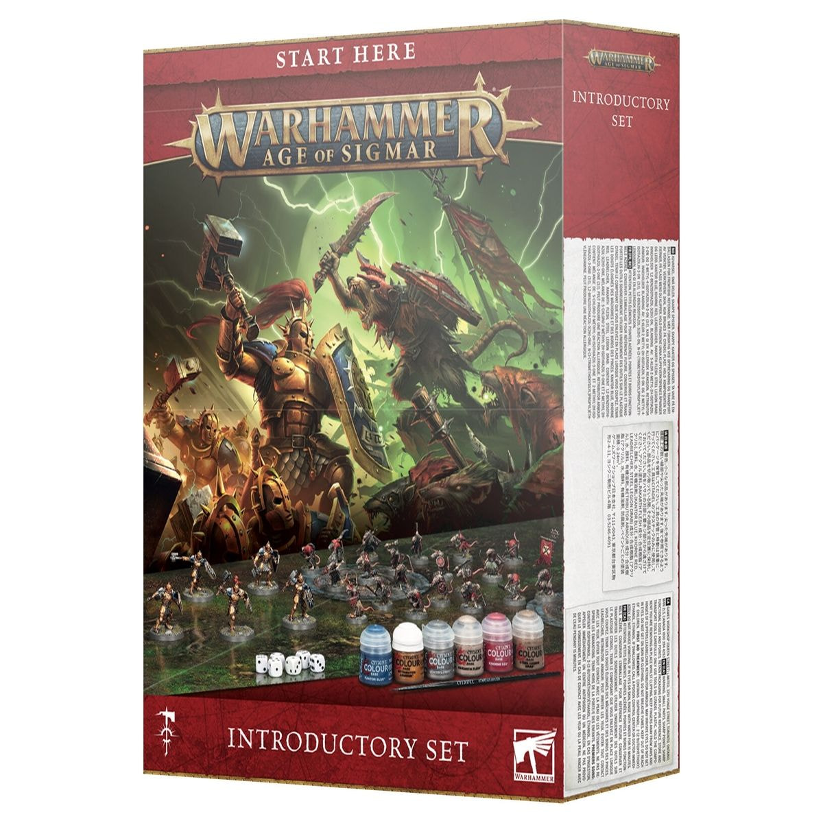 Ta komplet vas seznani z Warhammerjevo dobo Sigmarja – vznemirljivim fantazijskim okoljem, v katerem lahko sodelujete z zbiranjem vojsk, njihovim barvanjem in bojevanjem s prijatelji. 48-stranski priročnik vsebuje vse, kar potrebujete za začetek vseh vidikov tega vznemirljivega hobija – naučili se boste sestavljati in barvati svoje modele, odkrivati okolje, ki mu pripadajo, in se z njimi bojevati v svojih prvih bitkah.