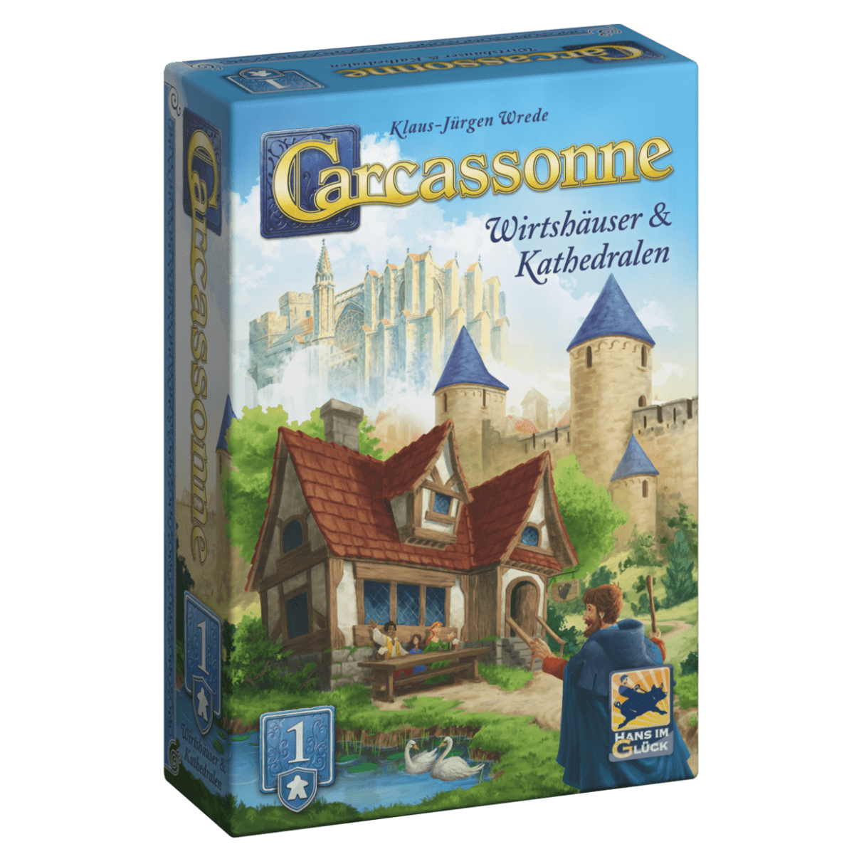 Carcassonne: Die Erweiterung (kasnejši tiski so uporabljali naslov Inns & Cathedrals) je prva večja razširitev za Carcassonne in v igro uvaja nekaj novih vidikov. Obstaja nekaj popolnoma novih vrst ploščic: gostilne in katedrale. Obstajajo tudi nove ploščice, ki predstavljajo mesta, ceste in samostane v novih oblikah. Poleg tega vsak igralec dobi "veliko figuro", ki šteje kot dve navadni figuri. Še en cel komplet figur pomeni, da lahko v igri uživa 6 igralcev. Nenazadnje, komplet kart za točkovanje pomaga, da je vodenje točkovanja nekoliko jasnejše.