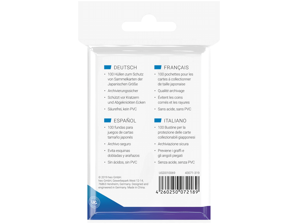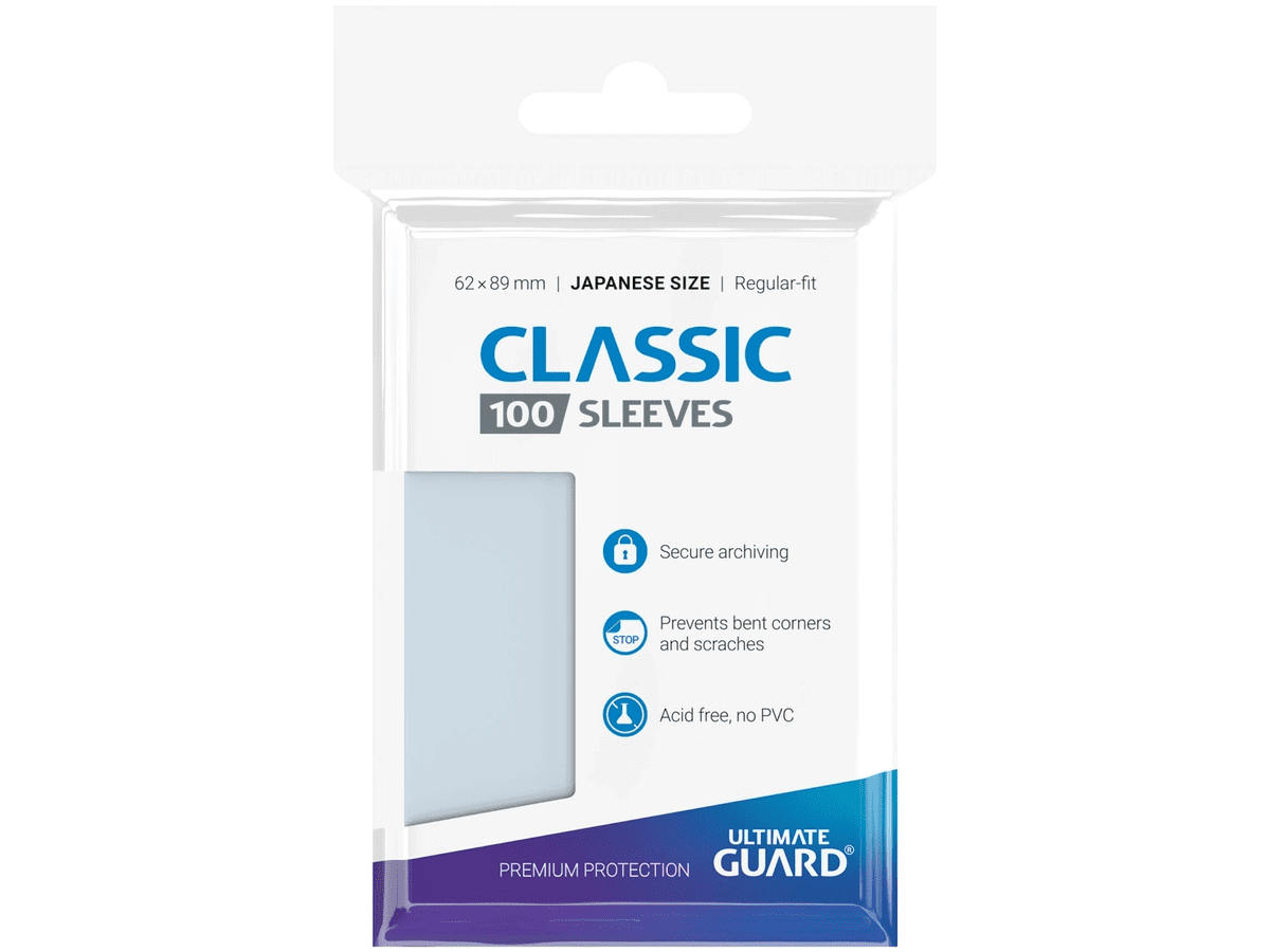 Klasični zaščitni ovitki so cenovno ugoden in preprost način za zaščito japonsko velikih zbirateljskih kart (Yu-Gi-Oh!, Cardfight!! Vanguard, itd.), bodisi za igranje, arhiviranje zbirke ali pošiljanje. Ti izjemno bistri ovitki ščitijo karte pred praskanjem, umazanijo in drugo zunanjo poškodbo.