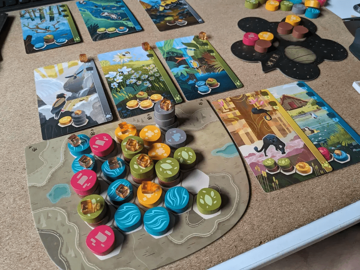 Postavitev žetonov je odvisna od ciljev na živalskih kartah in točkovalnih pravil za različne terene (gora, polje, gozd itd.). Na primer:
