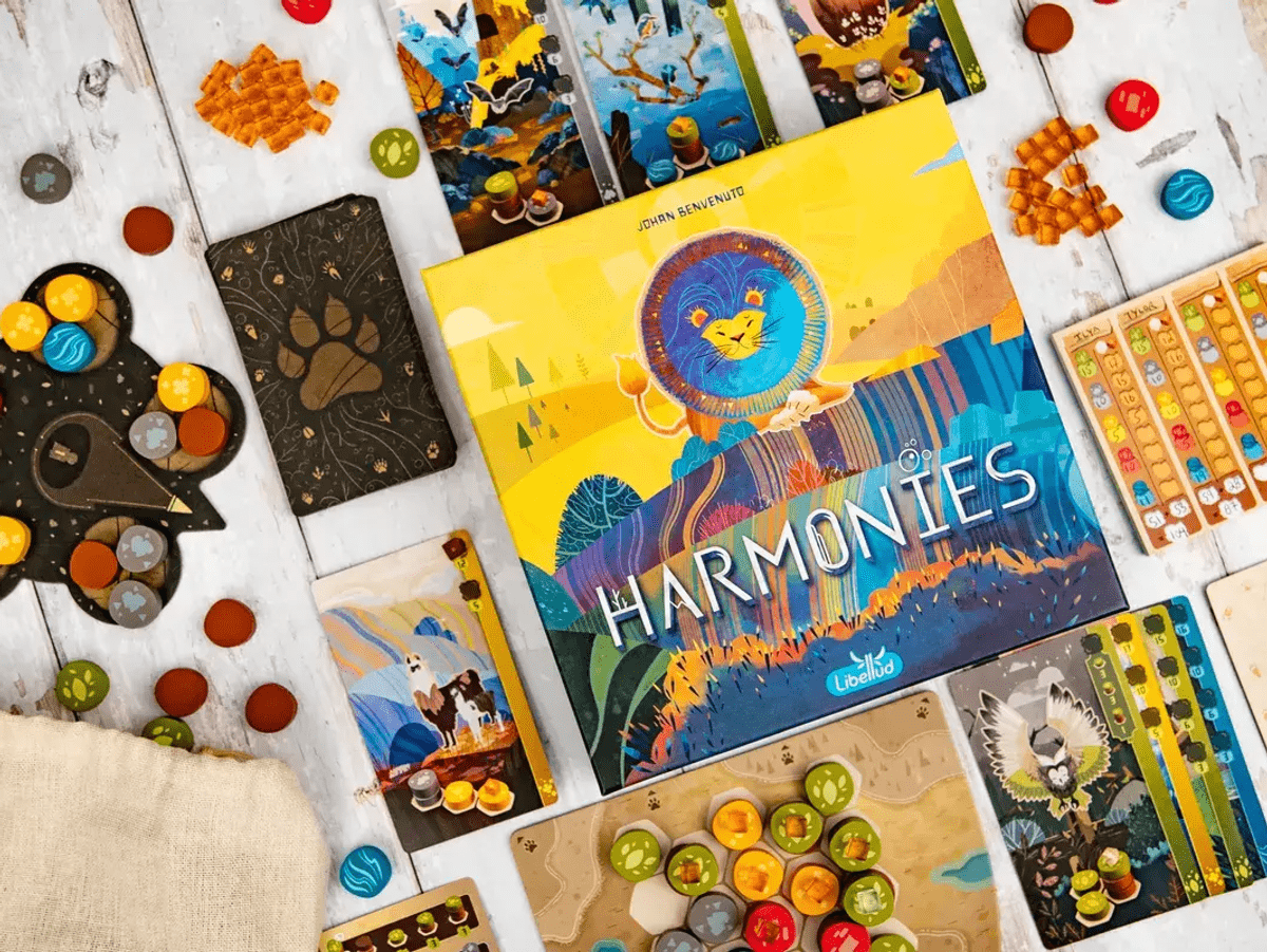 V igeri Harmonies ustvarjate pokrajine s postavljanjem barvnih žetonov in oblikujete habitat za svoje živali. Da bi zaslužili čim več točk in zmagali, morate habitat pametno vključiti v svojo pokrajino in poskrbeti, da se vanjo naseli čim več živali.
