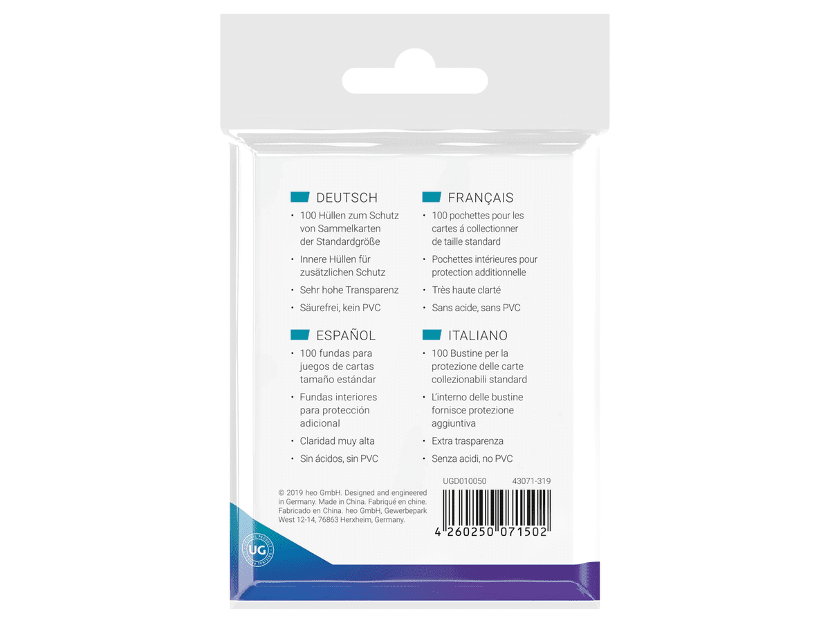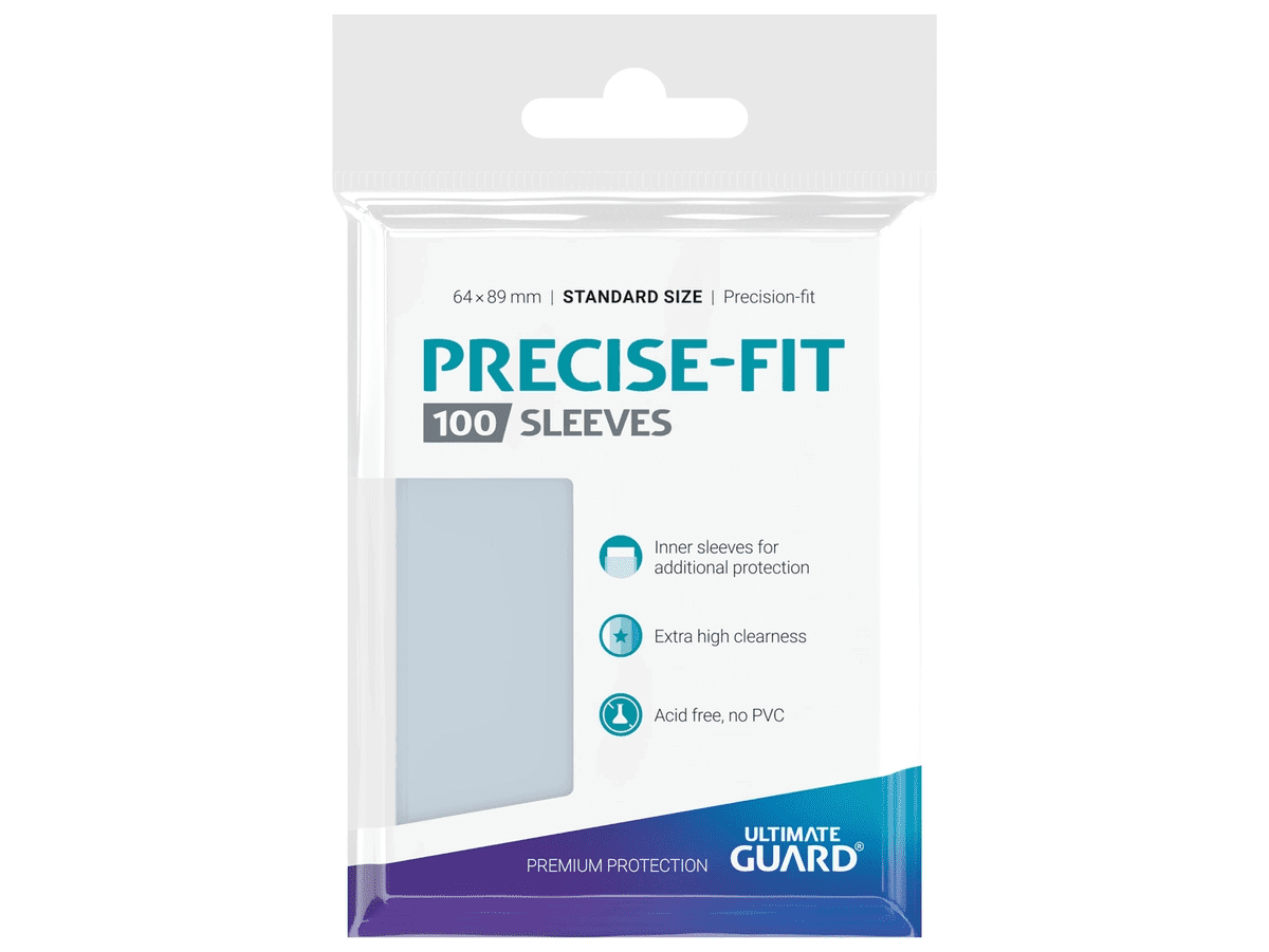 Natančno prilegajoči se notranji ovitki so izjemno bistri ovitki za dodatno zaščito kart. Zasnovani so za standardno velike zbirateljske karte (Magic: The Gathering, Pokémon, Lorcana, One Piece, Flesh and Blood, itd.) in so optimizirani, da se prilegajo znotraj ovitkov Ultimate Guard Katana in Cortex*. Na voljo so v različicah z vstavljanjem od zgoraj, od strani ali z možnostjo ponovnega zatesnjenja.
