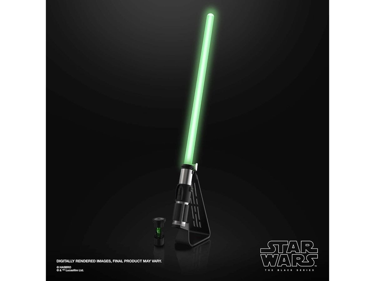 VSEBNINA STAR WARS: THE BOOK OF BOBA FETT: Ta predmet za vloge ima oblikovanje, okras in merilo, ki temeljijo na značilnem svetlobnem meču Yode iz vsebine Star Wars: The Book of Boba Fett.