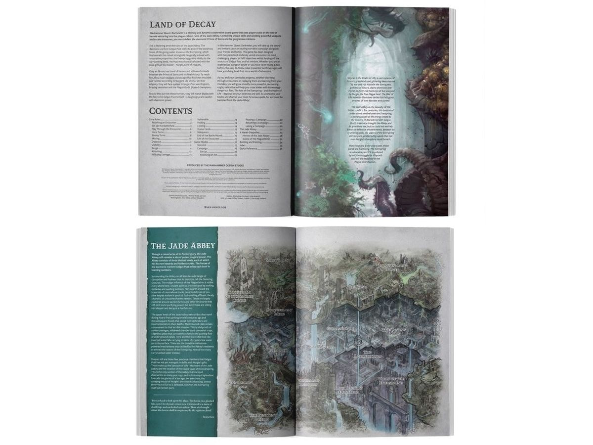 Zlo gniči med ruševinami Jadeove opatije. Demonski vojskovodja Gelgus Pust poskuša zastrupiti čudovit vir življenjske vode, znan kot Večno vrelo, ki leži pod porušenim utrdbam. S čarobnimi zdravilnimi lastnostmi Večno vrelo daje vitalnost okoliškim deželam. Toda Pust bi ga rad oskrunil z strupenimi darili svojega gospodarja – Nurgla, Gospodarja kuge. Le neustrezen trop junakov in najemnikov stoji med Knegom ran in njegovo končno zmago. Da bi prišli do njega, se morajo prebiti skozi pokrajino, ki je bila oblikovana in zvita po Nurglovih zlobnih muhah.
