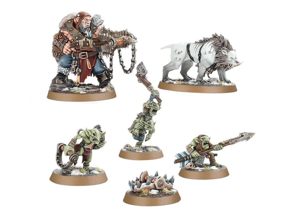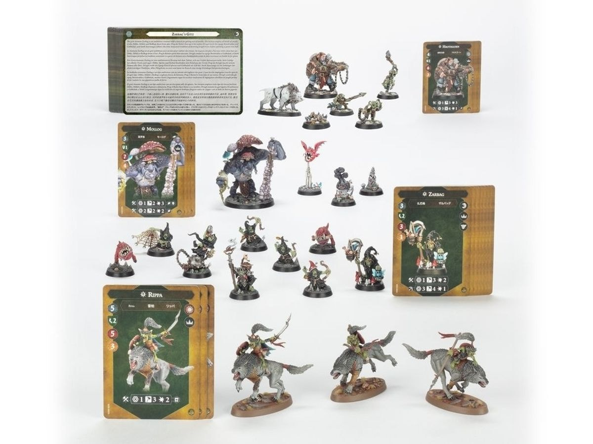 Ta komplet zbira štiri bojne čete s temo uničenja za Warhammer Underworlds. Vse miniature so za sestavitev brez lepila, oblikovane v barvni plastiki in vključujejo scenograf ske podstavke na okvirjih, tako da lahko hitro začnete z igranjem. Prav tako boste našli vojne liste in karte borcev za vsako bojno četo. Hrothgornovi lovci so vsestranska Flex bojna četa, Rippini Rjoveči čekani so agresivna Strike bojna četa, Zarbagovi Giti so ambiciozna bojna četa za zavzemanje polj, Mob Molloga pa predstavlja Mastery slog igranja, ki nagrajuje igralce za previden pristop.