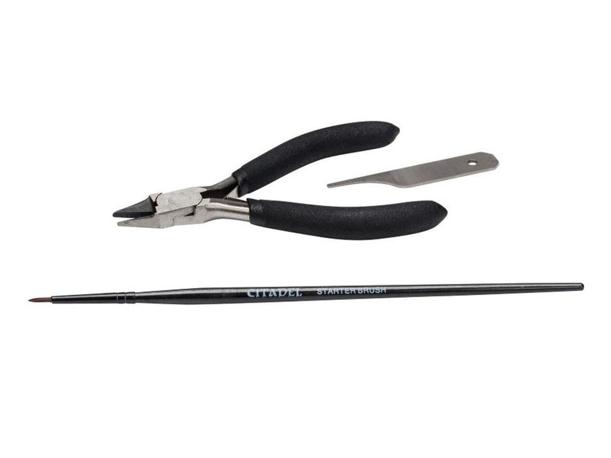 Začnite z udobnimi škarjami za odstranjevanje modelov s podlage, z rezilom za odstranjevanje sledi po modelarski formi za pripravo modelov na barvanje in s čopičem za začetnike, ki je ravno pravšnje velikosti za osnovno barvanje.