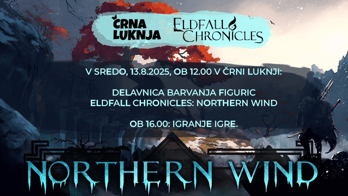 Za vse ljubitelje Eldfall Chronicles, spročamo, da ustvarjalci igre organizacijo dogodek v prostorih trgovine Črne Luknje (Poljanska 19, 1000 Ljubljana) barvanja in igranja njihove težko pričakovane nove igre Northen Wind.